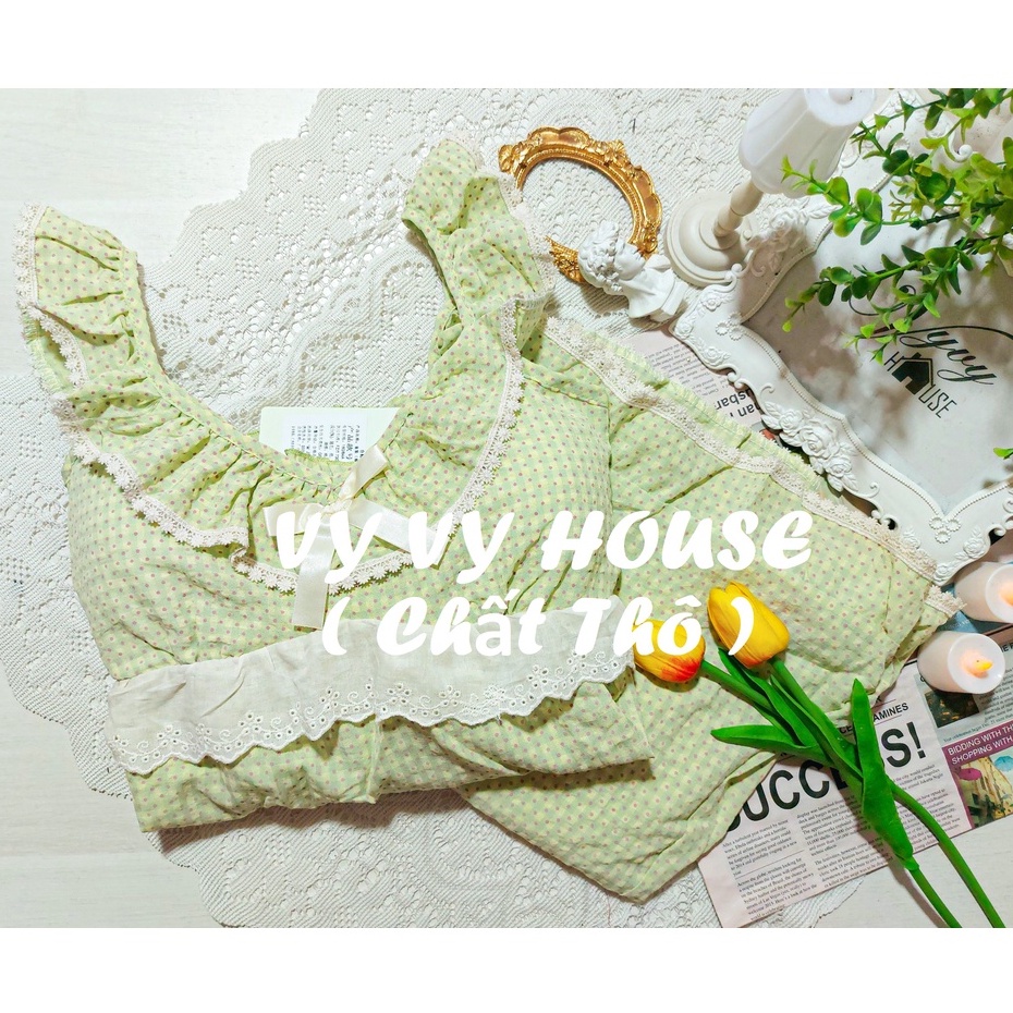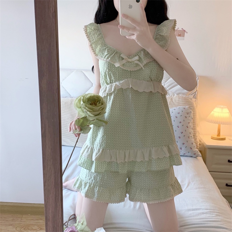 Set bộ nữ mặc nhà chấm bi xanh lá 2 dây quảng châu