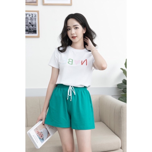 Set bộ quần đùi áo phông thun cotton mặc nhà kèm quần xanh lục NLB00094-WF