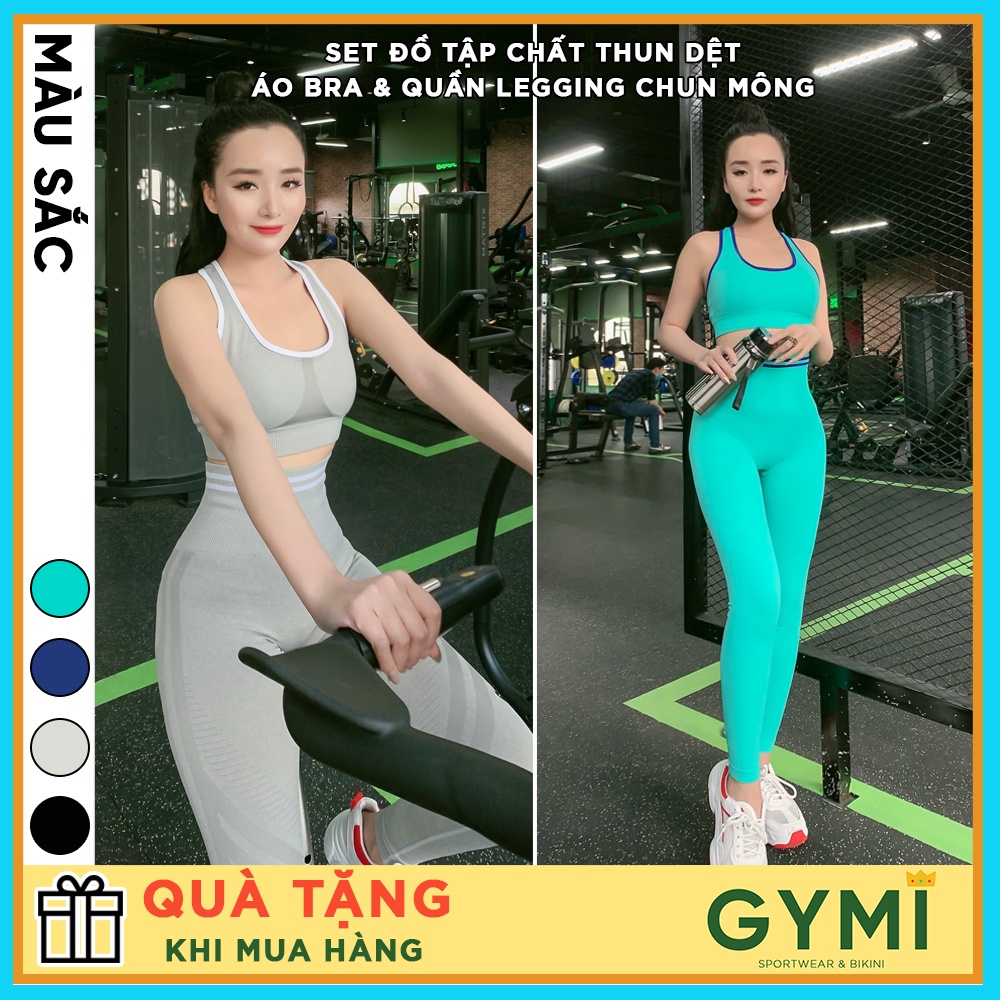 Set Đồ Bộ Tập Gym Yoga Nữ Thể Thao Áo Bra NaQi Chất Dệt Thun Tăm Kèm Mút Gymmy B008