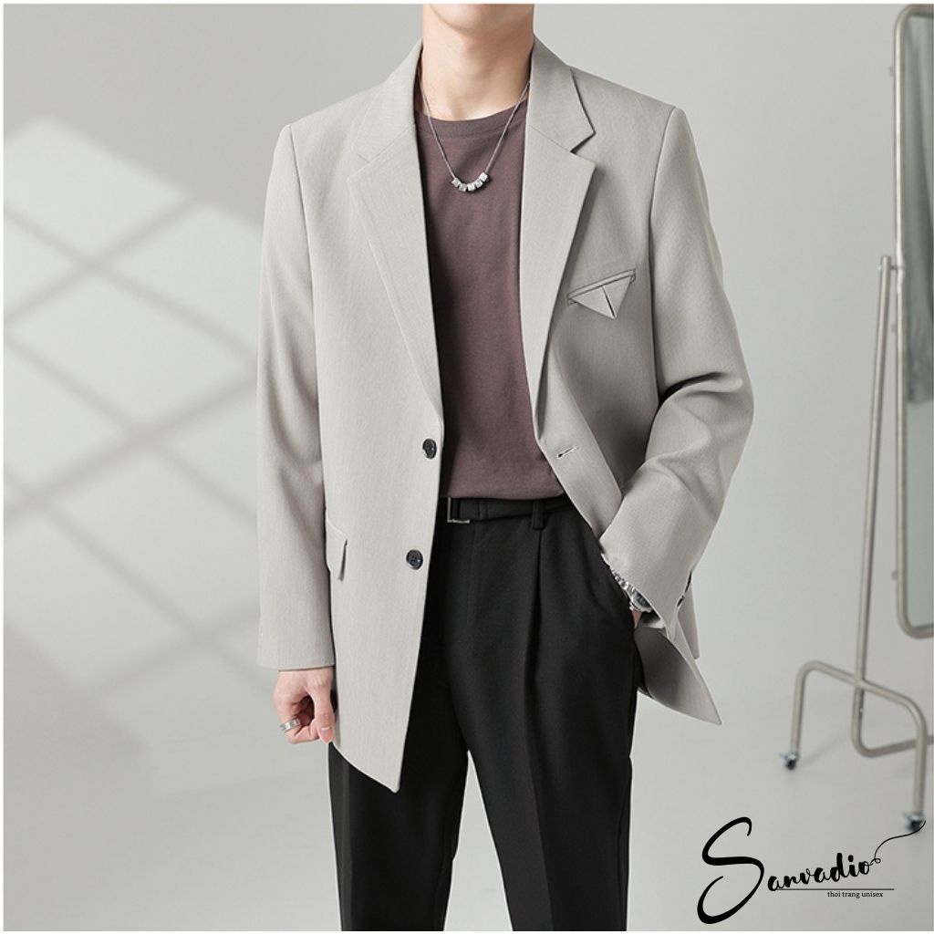 Set Blazer Nam Form Suông Rộng SANVADIO set đồ nam gồm áo blazer và quần âu ống suông phong cách Hàn Quốc AD015