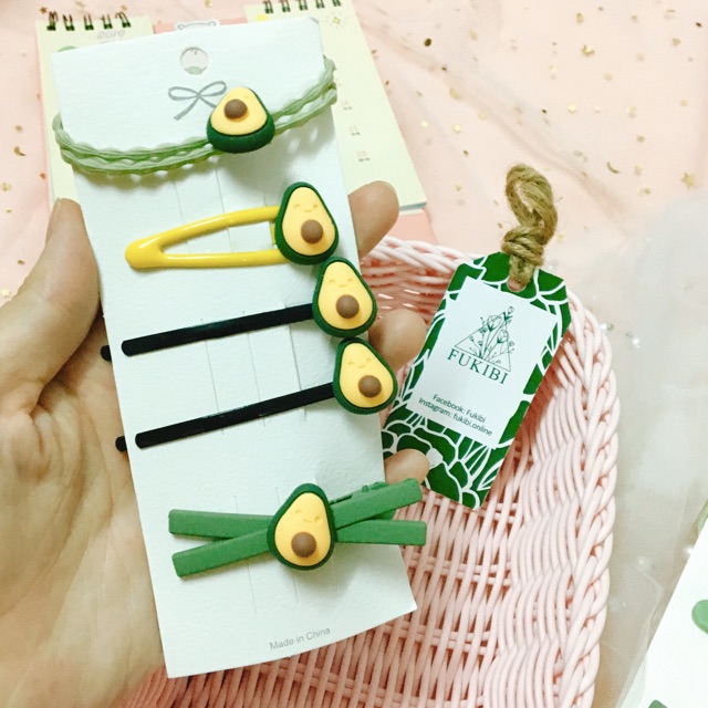 SET CỘT TÓC - KẸP TÓC QUẢ BƠ 5 MÓN ẢNH THẬT