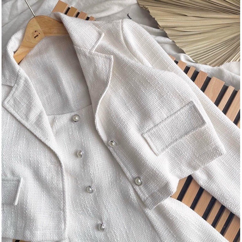 Set dạ set đầm set đồ nữ áo 2 dây với áo khoác phối cúc dễ thương cá tính sáng da xinh đẹp phong cách XUKA DRESS MS 025