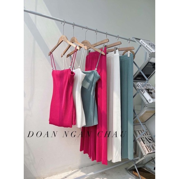 Set dập ly áo 2 dây gài ngọc phối quần suông!