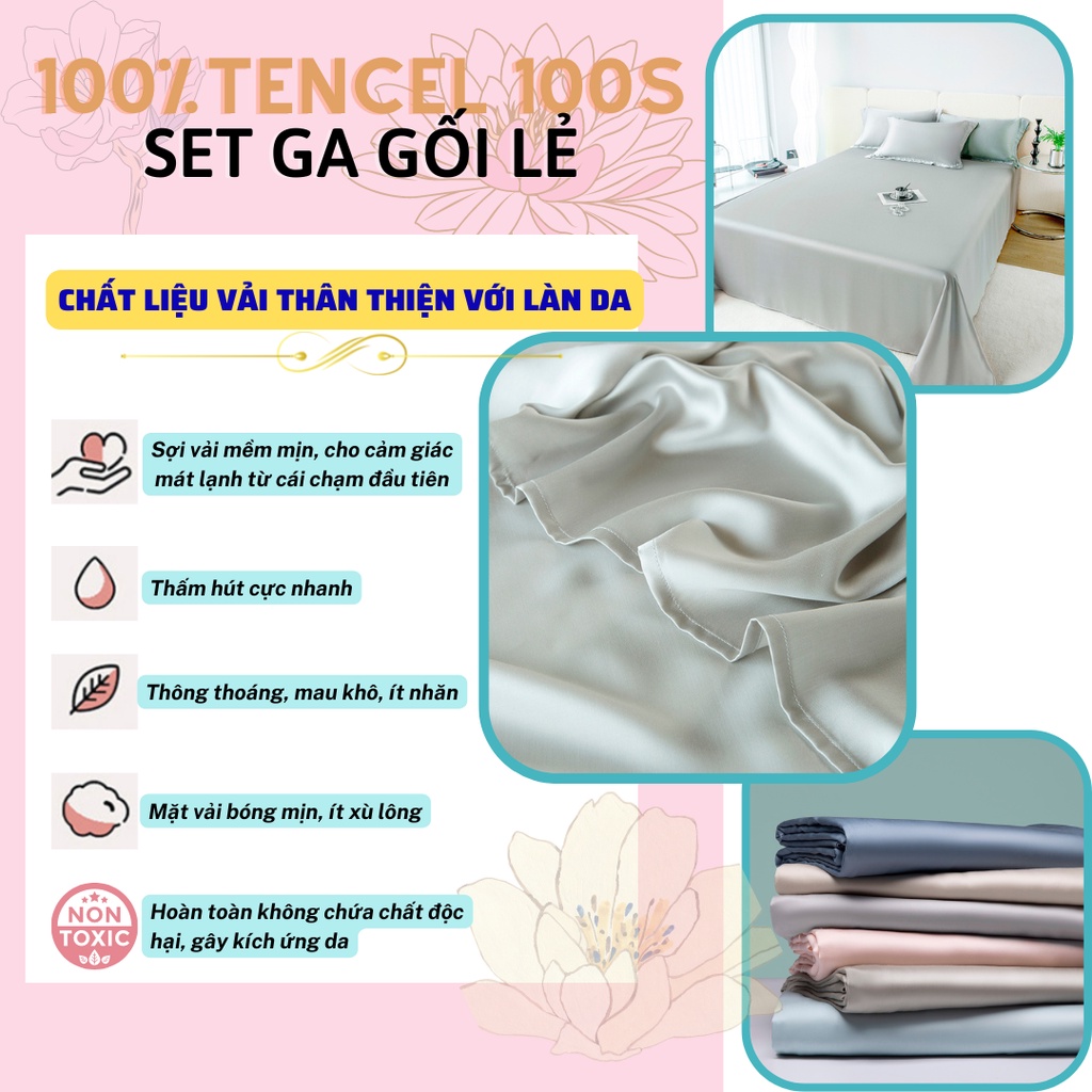 Set ga gối lẻ 3 món cao cấp 100%Tencel 80s siêu mềm mát mịn giá dùng thử hấp dẫn