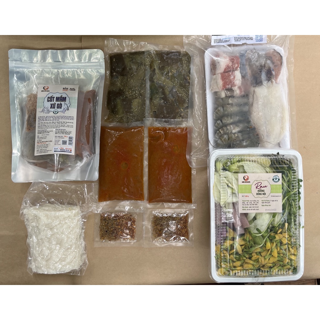 Set Lẩu Mắm Xứ Gò dành cho 4-6 nguời - Đẩy đủ nước cốt, rau đặt sản miền Tây, hải sản