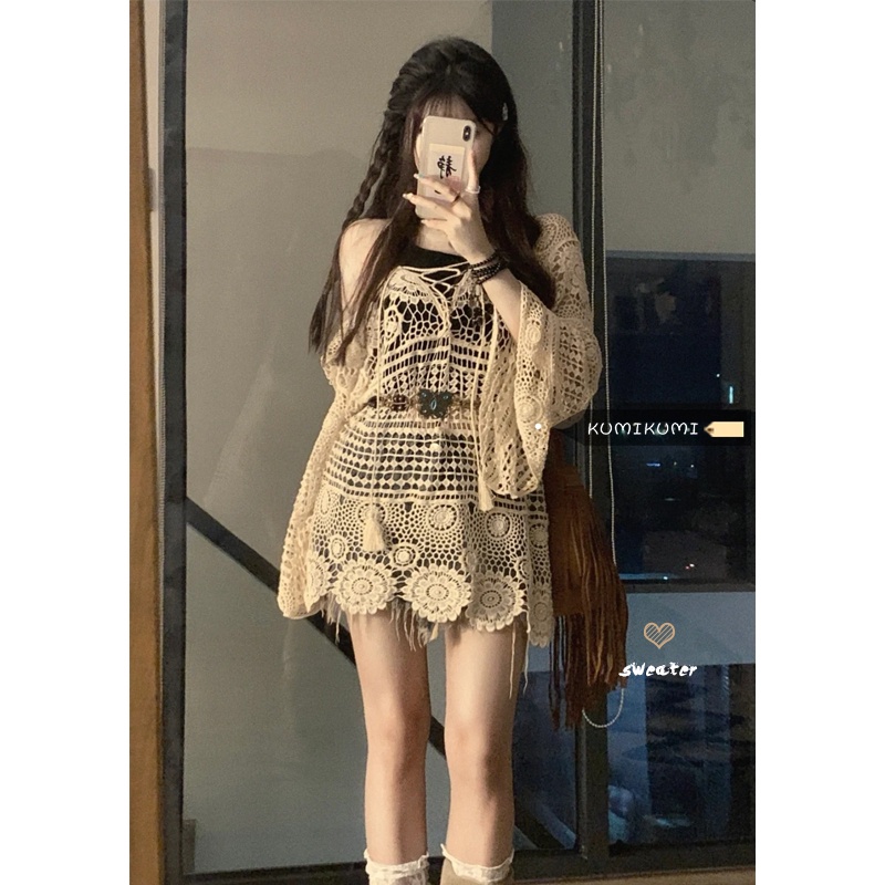 Set Áo Khoác Cardigan Chống Nắng + Chân Váy Ôm Eo Phối Họa Tiết Áp Phích Thời Trang Mùa Hè Cho Nữ