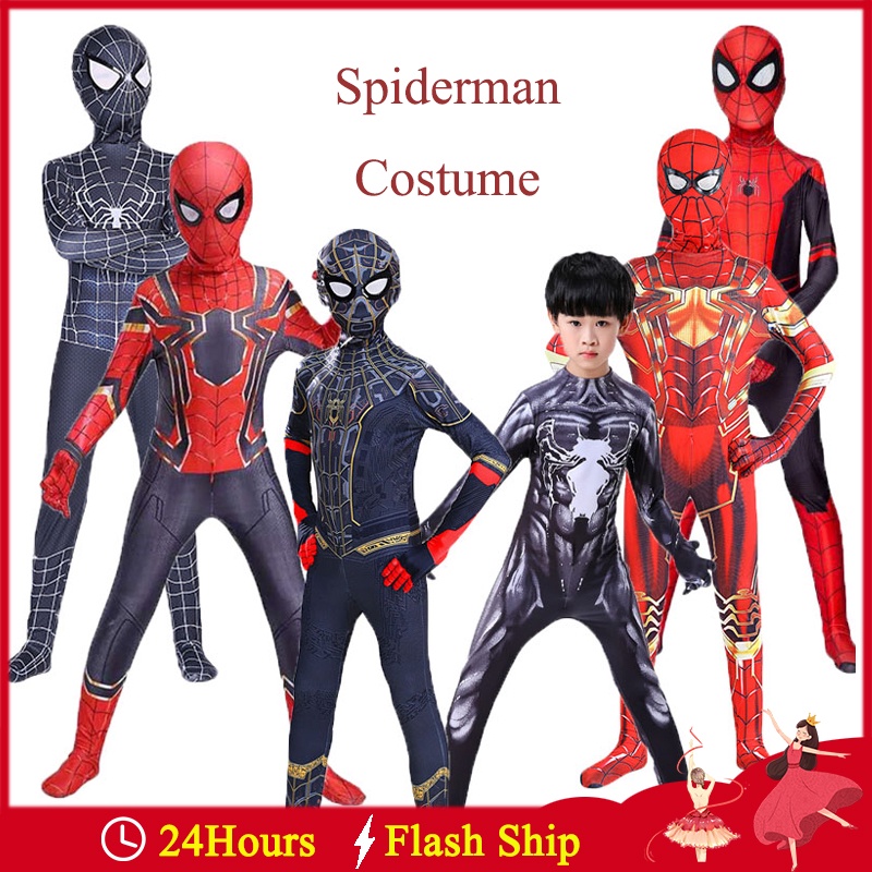 SUGE Set Đồ Hóa Trang Người Nhện Gồm Áo Tay Dài + Quần + Mặt Nạ Hóa Trang Halloween Cho Bé