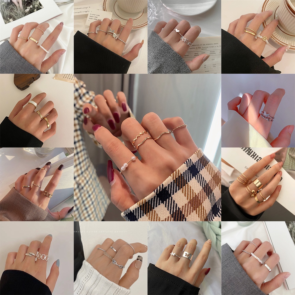 Set nhẫn 17KM đính ngọc trai giả kiểu xoắn ốc trái tim bướm phong cách Hàn Quốc thời trang dành cho nữ trang sức