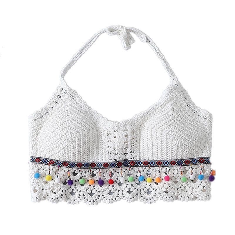 HH02-Set bikini ren đi biển 3 món áo bra yếm hạt - quần sóc ren- áo choàng