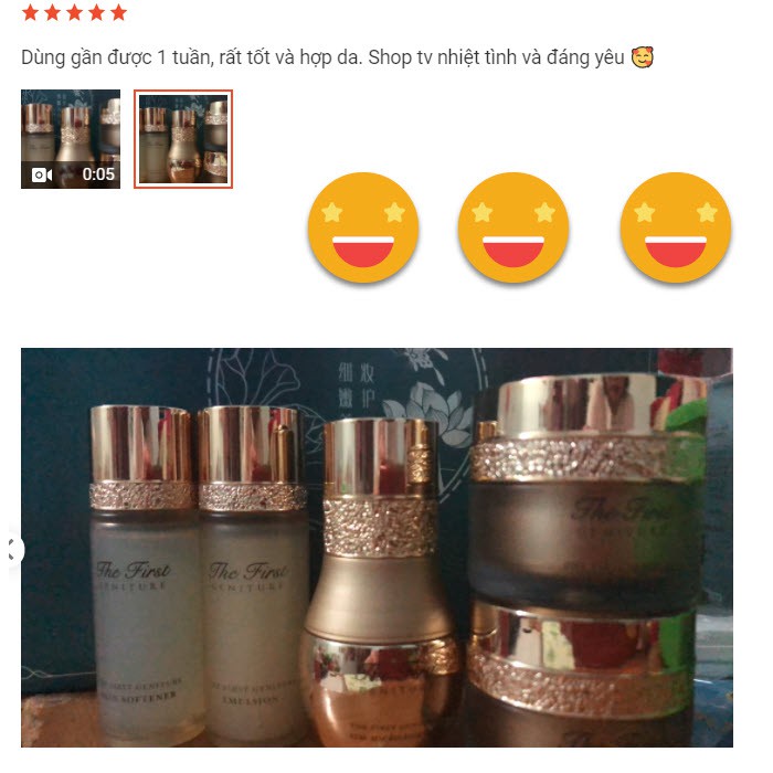 BỘ DƯỠNG DA MỚI TOANH VỪA ĐƯỢC SẢN XUẤT NĂM 2021 NHÉ CẢ NHÀ ƠI, DATE TỚI 2024 LẬN NHA HIHI #BỘ_DƯỠNG_DA_OHUI_THE_FIRST_GENITURE_SPECIAL_GIFT_SET_5 SẢN PHẨM NÀY KHÔNG PHẢI LÀ THUỐC VÀ KHÔNG CÓ TÁC DỤNG THAY THẾ THUỐC Xuất xứ: Hàn Quốc 🌻🌻🌻 #SHOP_CAM_KẾT: - 100% sản phẩm là hàng #CHÍNH_HÃNG, đầy đủ hoá đơn nhé - 100% #HOÀN_TIỀN nếu khách hàng nhận hàng mà có bất kì vấn đề gì - 100 triệu #ĐỀN_TIỀN cho các bạn nếu phát hiện hàng giả, hàng nhái 🌼🌼🌼 Bộ dưỡng gồm – Nước hoa hồng tái sinh (soften toner) (20ml) – Sữa dưỡng tái sinh (Emulsion) (20ml) – Tinh dầu tái sinh (Essence) (5ml) – Kem dưỡng tái sinh (Cream) (7ml) – Kem dưỡng chăm sóc da vùng mắt Eye Cream (5ml) 🍄🍄🍄. Hướng dẫn thứ tự sử dụng: Bước 1: Nước hoa hồng tái sinh da. Bước 2: Tinh chất hoạt hóa tế bào da, tăng cường độ đàn hồi và săn chắc. Bước 3: Sữa dưỡng cho nếp da mịn màng, bóng mượt. Bước 4: Kem dưỡng mắt tăng cường tế bào cho da mắt. Bước 5: Kem dưỡng tái sinh da. #ohui #Ohui #whoo #Whoo #sum #Sum #sum37 #Sum37 #duongda #dưỡngda #ohiu #Ohiu #chínhhãng #son #Son #mỹphẩm #mypham #hànquốc #hanquoc #nám #duongtrang #dưỡngtrắng