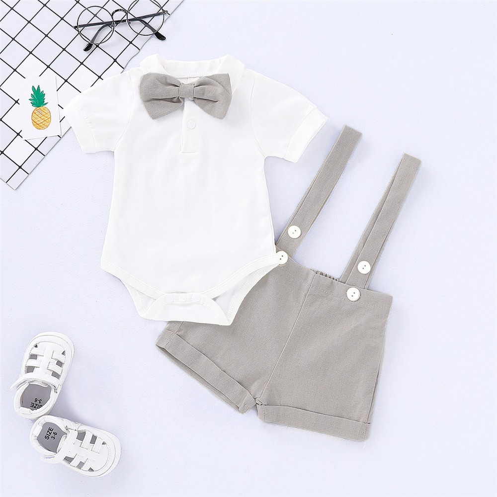 Set trang phục MIKRDOO áo liền quần polo tay ngắn và quần đùi yếm phong cách peter pan thời trang cho bé trai 0-2 tuổi