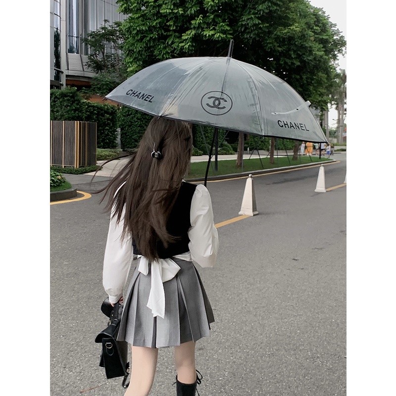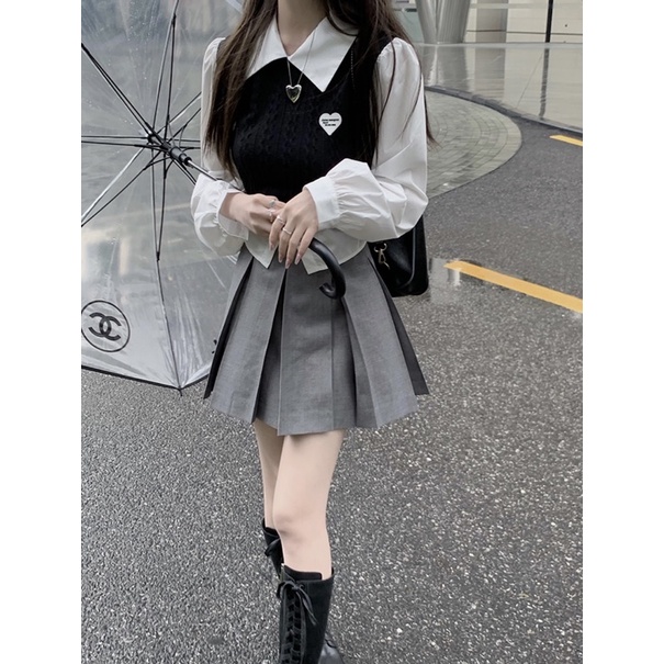 Set Ulzzang Áo Sơ Mi Giả 2 Mảnh + Chân Váy Xếp Ly Lưng Cao Mẫu Mới Nhất Cho Nữ