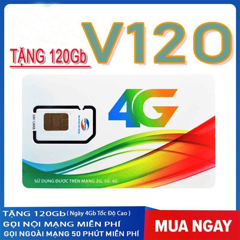 Sim 4G Viettel V120N GÓI VIP - 4GB/NGÀY DATA TỐC ĐỘ CAO - MIỄN PHÍ GỌI