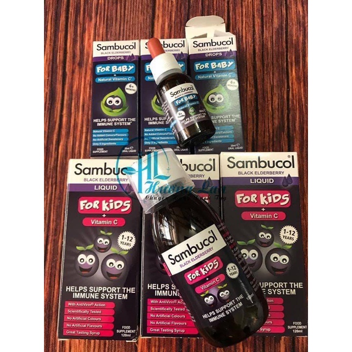 * Siro Sambucol Black Elderberry Liquid * Xuất sứ: ANh * Thương Hiệu: Sambucol * THông tin: Siro Sambucol Black Elderberry Liquid - Siro Sambucol là một loại siro đặc biệt, được chiết xuất từ hơn 1000 quả cơm cháy đen. - Sambucol for kids được đặc chế dành riêng ch