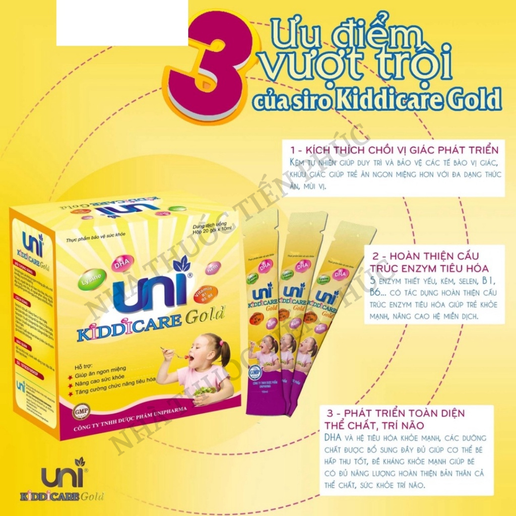Siro Uni Kiddicare gold - Giúp bé ăn ngon, bổ sung kẽm cho bé, hết biếng ăn, lười ăn, tăng cường đề kháng Hộp 20 gói