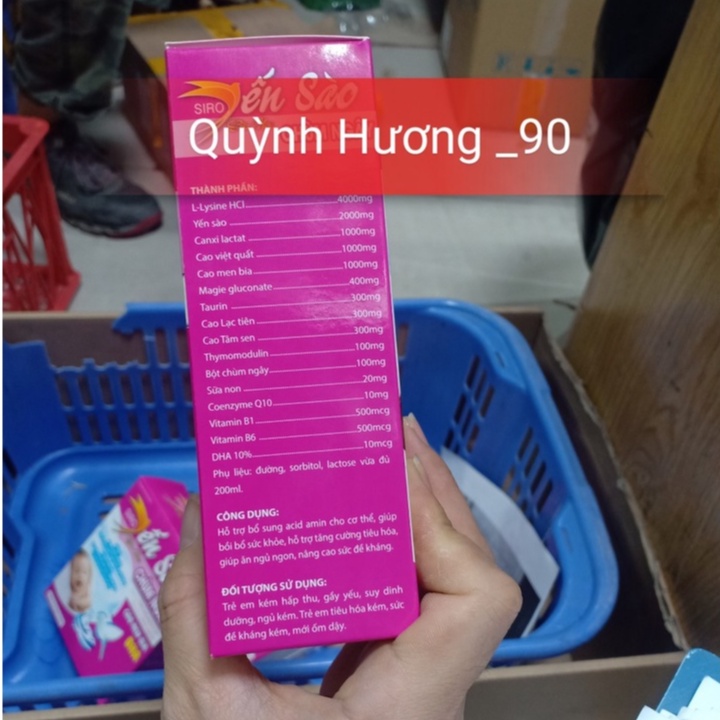 1/ THÔNG TIN SẢN PHẨM: - Siro Ăn Ngon Yến Sào Chùm Ngây dùng cho cả trẻ nhỏ kém ăn và người lớn ăn không ngon miệng, ngủ không ngon giấc - Sản phẩm có bổ sung thêm YẾN SÀO, CHÙM NGÂY và SỮA NON 2/ CÔNG DỤNG & PHÙ HỢP VỚI: - Trẻ nhỏ kém ăn, chậm lớn, khó ngủ, ngủ không ngon giấc, cơ thể gầy yếu - Trẻ ăn không hấp thu, hay khóc, ngủ không ngon giấc - Trẻ còi xương, chậm mọc răng, suy dinh dưỡng - Người lớn bị mệt mỏi, làm việc quá sức, khó ngủ, tiêu hóa kém 3/ XUẤT XỨ: - Sữa Non: nhập khẩu từ Mỹ - Cao Men Bia: nhập khẩu từ Mexico - Bột Đạm Thủy Phân: nhập khẩu từ Pháp - Thymomodulin: nhập khẩu từ Đan Mạch - Vị ngọt: sử dụng vị ngọt thanh của cây cỏ ngọt Stevia nhập khẩu từ Nam Mỹ - Yến Sào: sử dụng Tổ Yến từ Khánh Hòa, nguồn Tồ Yến tốt nhất Việt Nam 4/ CHỐNG CHỈ ĐỊNH - Người bị dị ứng với các thành phần của sản phẩm - Sản phẩm này không phải là thuốc và không có tác dụng thay thế thuốc chữa bệnh 5/ HẠN SỬ DỤNG - 3 năm kể từ ngày sản xuất