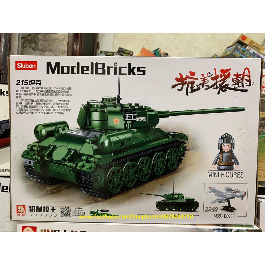 Sluban 0982 Army WW II Bộ lắp ráp Xe Tank T 34 / 85 215 của Liên Xô thế chiến 2