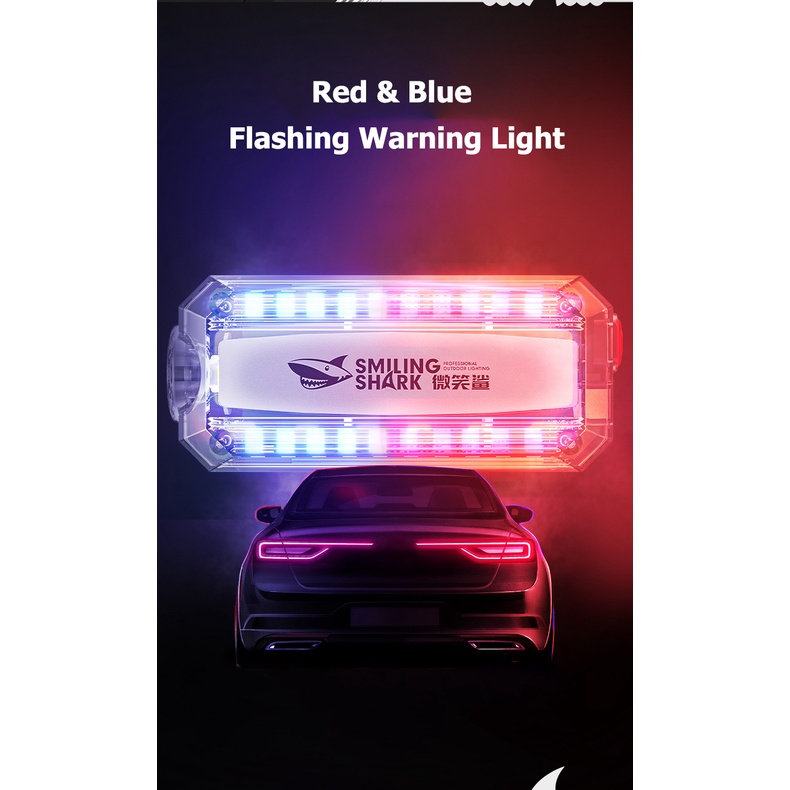 Smiling Shark JD007 Đèn cảnh báo khẩn cấp màu xanh lam và đỏ nhấp nháy đeo vai an toàn cho tuần tra đêm/xe đạp/ngủ