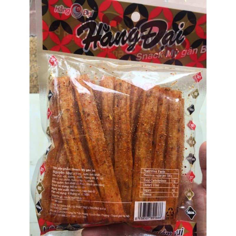 - -Tên Sản Phẩm : Snack Mỳ Gân Bò Hằng Đại - Thông Tin Sản Phẩm : - Snack Mỳ Gân Bò Hằng Đại đã là dạng bim bim ăn vặt rất được ưa chuộng tại các cửa hàng, tạp hóa hay căng tin trường học. -Cách dùng: mở túi ăn liền -Hạn sử dụng 6 tháng kể từ ngày sản xuất -Bảo quản