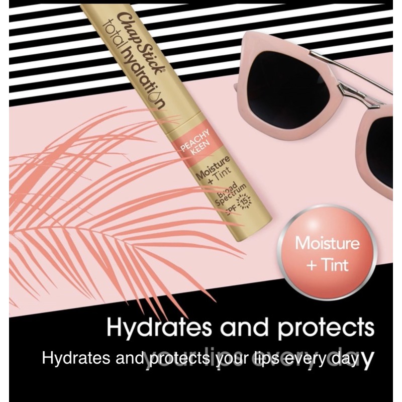 ChapStick Total Hydration Moisture + Tint SPF 15 Pretty in Pink dưỡng môi bảo vệ và giữ cho đôi môi được nuôi dưỡng và trông khỏe mạnh, với chất chống nắng tự nhiên, tuýp 2.2g Bạn cảm thấy mệt mỏi khi phải quyết định giữa một đôi môi mịn màng, khỏe mạnh và một màu mô