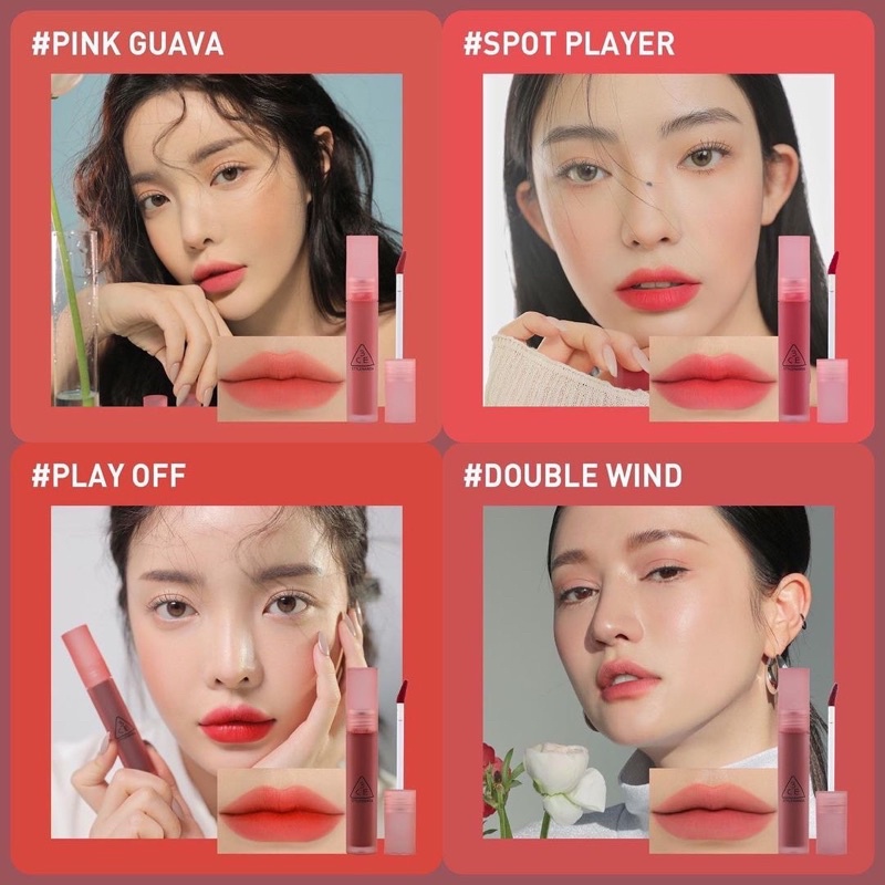 Son Kem 3CE Blur Water Tint Dòng son mới đỉnh cao của nhà 3CE cho ra mắt năm nay. 3CE Stylenanda Blur Water Tint là dòng son tint dạng nước với chất son trơn mịn cho đôi môi mềm mại và căng mọng. Thỏi son có công thức chống thấm đặc biệt, giúp đôi môi mịn nhẹ cả ngày dài, không gây bết dính dù đeo khẩu trang. Son được bổ sung một lớp kem lót nhẹ mang đến độ che phủ tự nhiên cho đôi môi. Hiện shop có màu : * Warmth * Night Talk * Dear March * Sepia: đỏ đất * Bake Beige: cam cháy * Casual Affair : hồng đỏ đất * Double Wind: cánh hoa hồng khô * Coral Moon: cam san hô * Play Off: đỏ cam san hô * Lay Down: hồng đào
