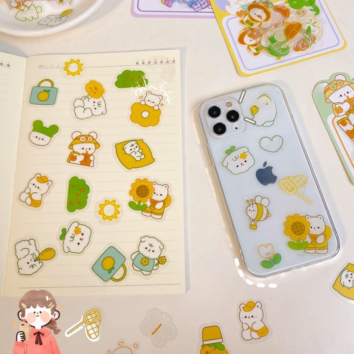 Sticker cute dán mũ bảo hiểm sổ điện thoại laptop bàn ghế góc làm việc 30 miếng PET K50 ngộ nghĩnh vui nhộn.