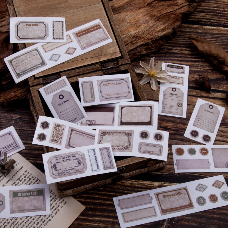 Sticker dây chữ và tem phong cách retro cổ điển trang trí sổ