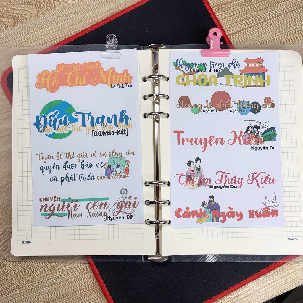 Bộ tựa ngữ văn lớp 9 do BomBon thiết kế. Bao gồm: các văn bản văn học trong chương trình trình ngữ văn 9. In sẵn có kéo dán được. Không cần mất nhiều thời gian mà bạn vẫn có tựa bài xinh lung linh luôn nè! Phân loại giấy: -Giấy decal mặt nhám KHÔNG PHAI MÀU