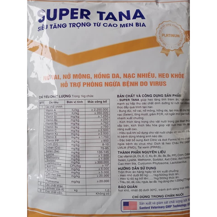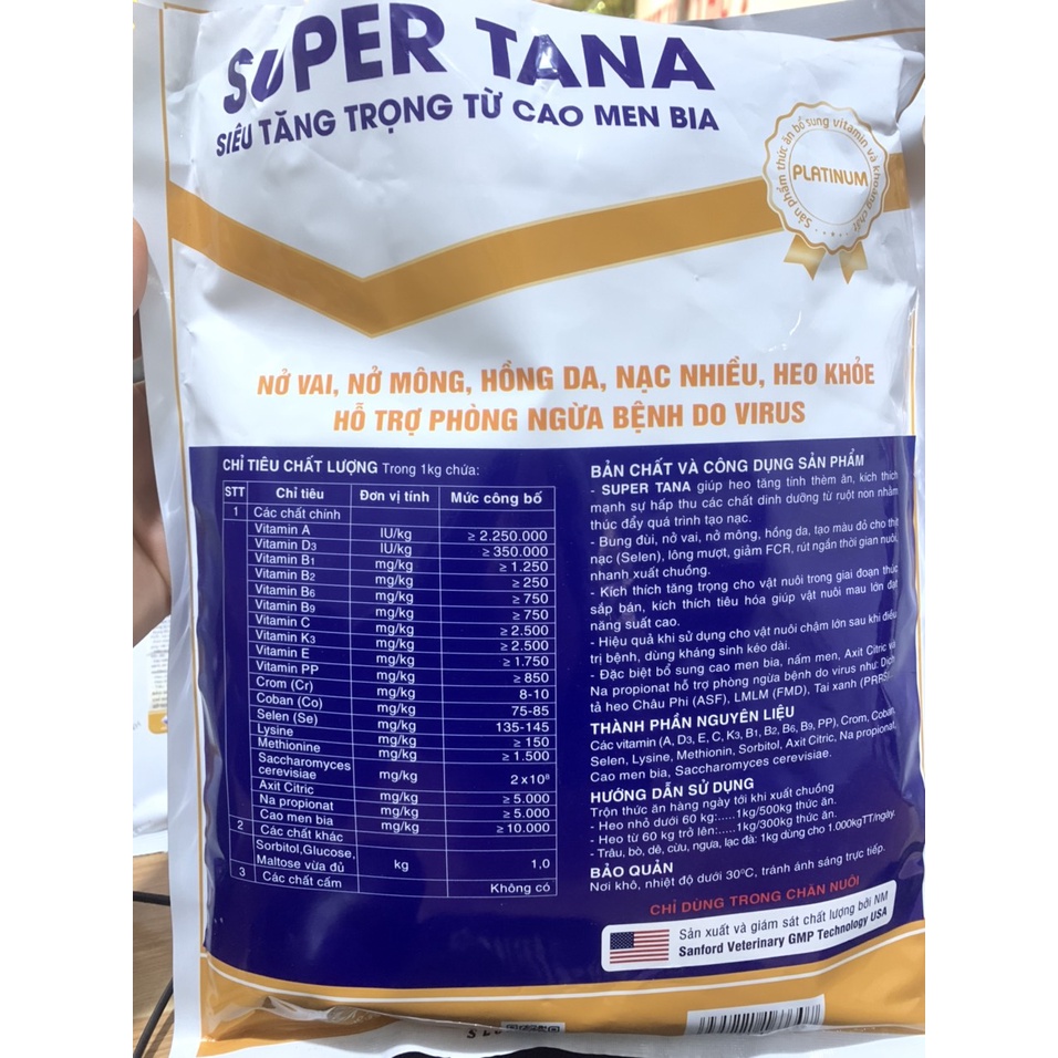 SUPER TANA 1Kg SIÊU VỖ BÉO HEO - SIÊU TĂNG TRỌNG HEO Tăng Trọng, Bụng Đùi, Nở Vai, Nở Mông, Nạc Nhiều, Heo Khỏe
