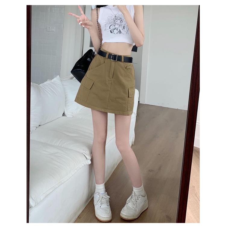 Suxi Nữ Mùa Hè Phong Cách Hàn Quốc Cao Cấp Slim Fit Túi Hông Chữ A Thường Ngày Dụng Cụ Váy Ngắn
