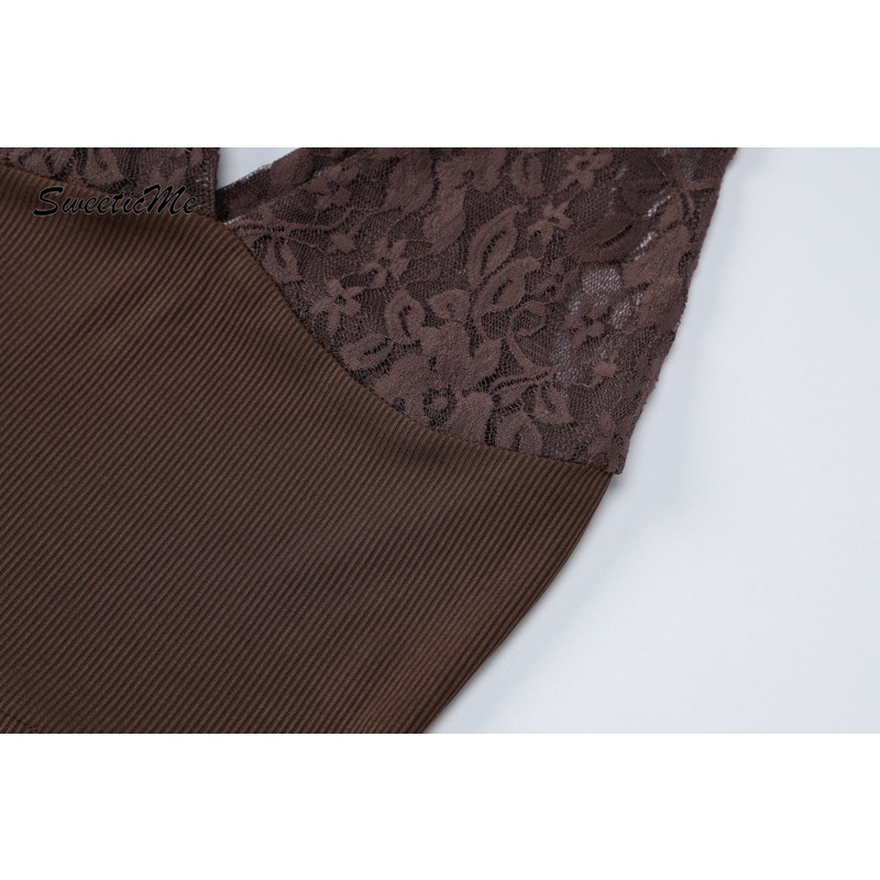 Sweeticme women's 2023 thời trang mới chuỗi màu rắn cổ v gợi cảm rỗng ra eo thấp bộ váy ngắn lưới