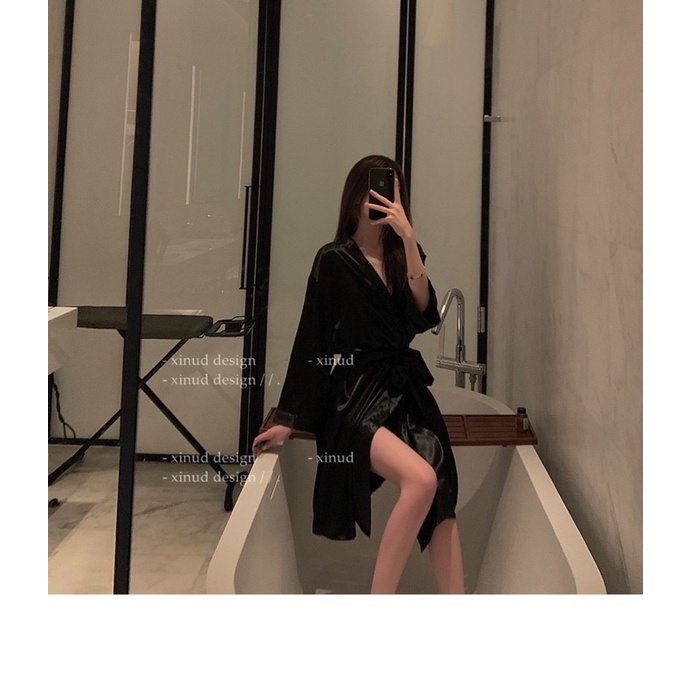 SX877 - ÁO CHOÀNG NGỦ VẢI LỤA MÀU TRƠN PHỐI HỢP CÙNG VÁY NGỦ KÈM THẮT LƯNG-Camluu99