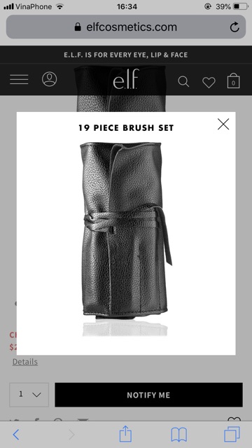 Mình tách set ra cho mọi người chỉ cần mua những cây mình cần nha, giá tách set nên Sẽ rẻ hơn giá bình thường rất nhiều luôn. Set cọ bao gồm 19 cây cọ cao cấp của hãng E.l.f: Bao đựng cọ Elf Contouring Brush: cọ tạo khối Selfie Ready Foundation Brush: cọ tán kem nền, che khuyết điểm và các sản phẩm dạng lỏng hoặc kem. Flawless face brush: đánh phấn phủ, tạo khối và má hồng Crease Brush: cọ tán phấn mắt và tạo sống mũi Eyeshadow “C Brush: tán màu mắt lên bầu mắt, đặc biệt màu nhũ. Eyebrow Duo Brush: kẻ mày kẻ mắt và tán lông mày Small Precision Brush: vẽ eyeliner, đánh màu nhũ ở đầu mắt Powder Brush: đánh phấn phủ, má hồng và tạo khối Blush Brush: đánh phấn phủ, má hồng và highlight Flawless Concealer Brush: đánh che khuyến điểm hoặc set phấn ở những chỗ nhỏ Stipple Brush: đánh kem nền và các sản phẩm lỏng hoặc kem Fan Brush: cọ quạt đánh highlight Highlighting brush: cọ đánh highlight, má hồng và tạo khối Blending Brush: tán màu mắt và màu nhũ lên mắt Mascara Fan Brush: đánh eyeliner và chải lông mi khi mascara bị vón cục Complexion brush: cọ phấn phủ, má hồng và tạo khối nhẹ nhàng Concealer brush: cọ đánh che khuyết điểm và đánh màu nhũ lên mắt