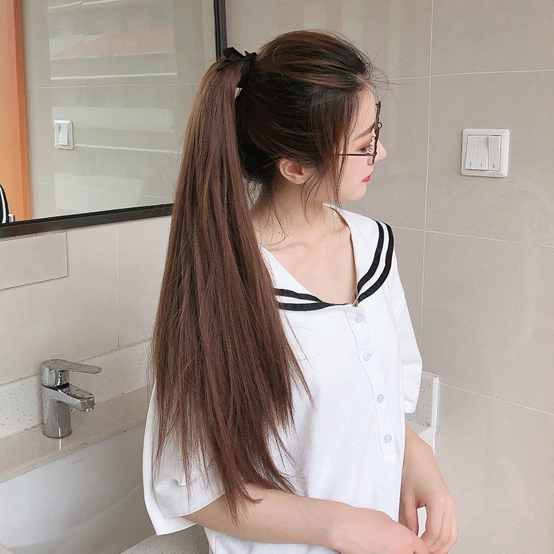 Tóc Giả Buộc Dây Cột Đuôi Loại Thẳng Dài 55cm Tỉa Lá !
