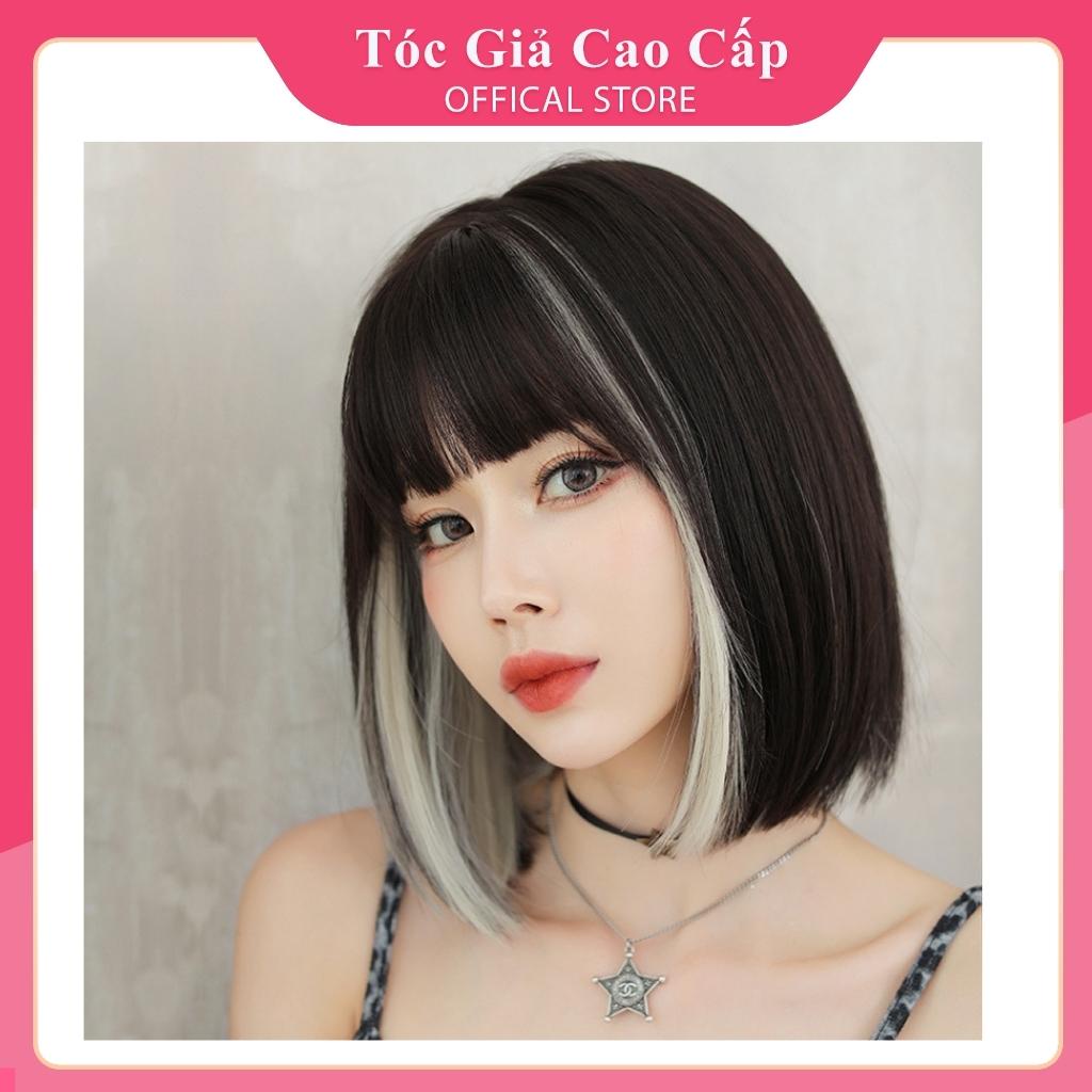 Tóc giả nữ nguyên đầu ngắn phối line xám mẫu mới , tăng kèm lưới trùm T334F