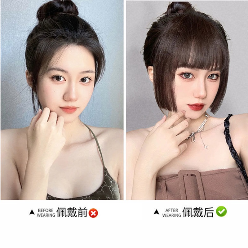 Tóc Mái Giả Nối Dài Mái Ngang Bằng Sợi Tổng Hợp Màu Nâu Đen