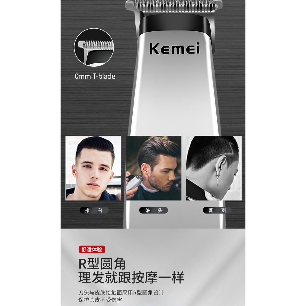 Tông đơ cắt tóc KEMEI không dây lưỡi chữ T cắt sát sạc lại được chuyên nghiệp có màn hình LCD