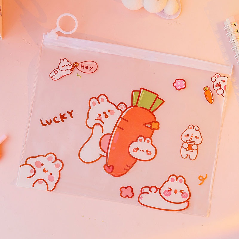 Túi đựng đồ dùng học tập tài liệu bút chì bi thước kẻ PVC trong suốt khóa zip văn phòng phẩm