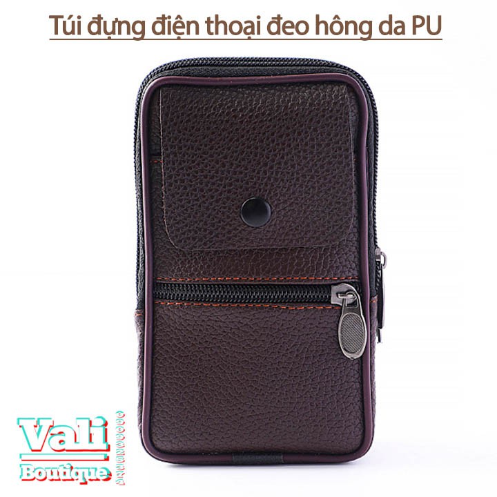 Túi đựng điện thoại da PU đeo ngang hông kiểu dọc T1 dạng to 4 ngăn - Túi đeo thắt lưng giả da PU kiểu dọc - nâu, đen.