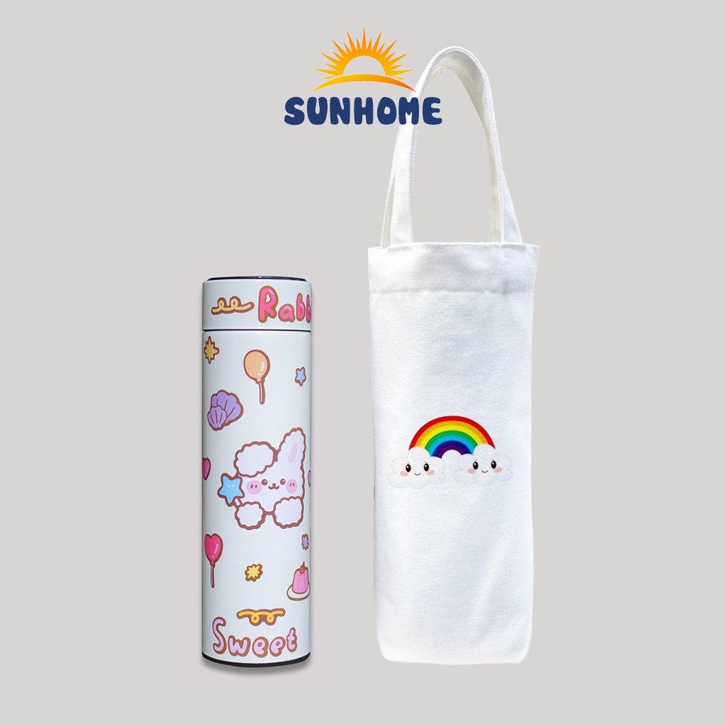 Túi đựng bình giữ nhiệt ly cốc nước SUNHOME vải canvas nhiều hình cute dễ thương
