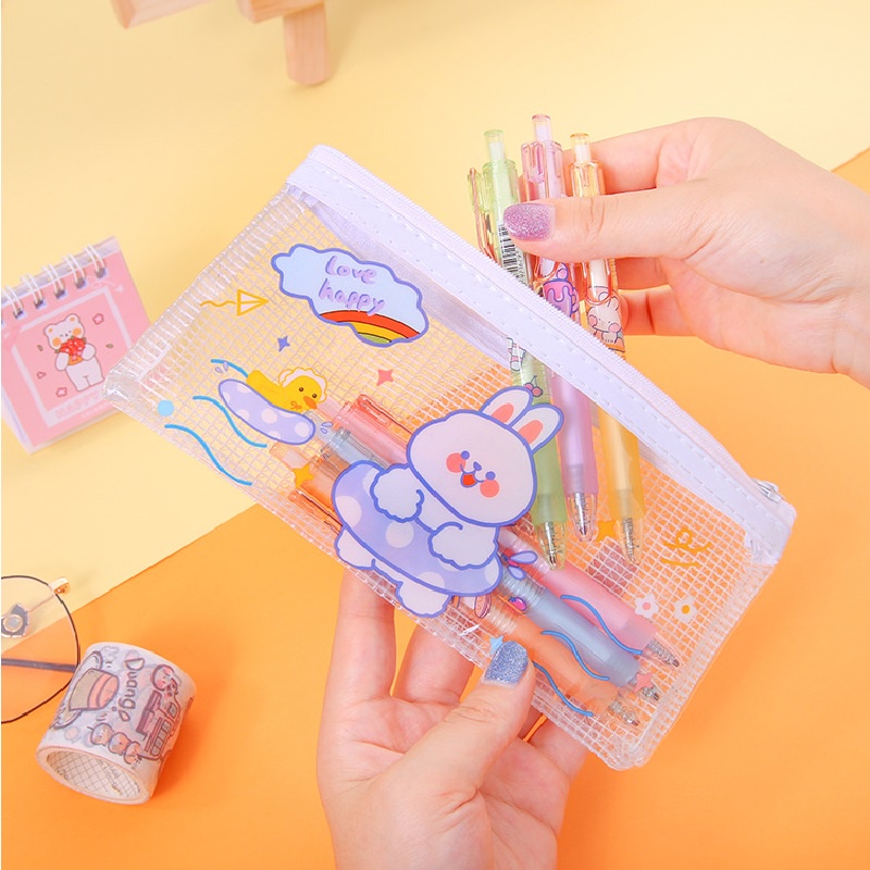 Túi Đựng Bút Bằng Pvc Trong Suốt Chống Thấm Nước Họa Tiết Thỏ Hoạt Hình Sáng Tạo Dễ Thương