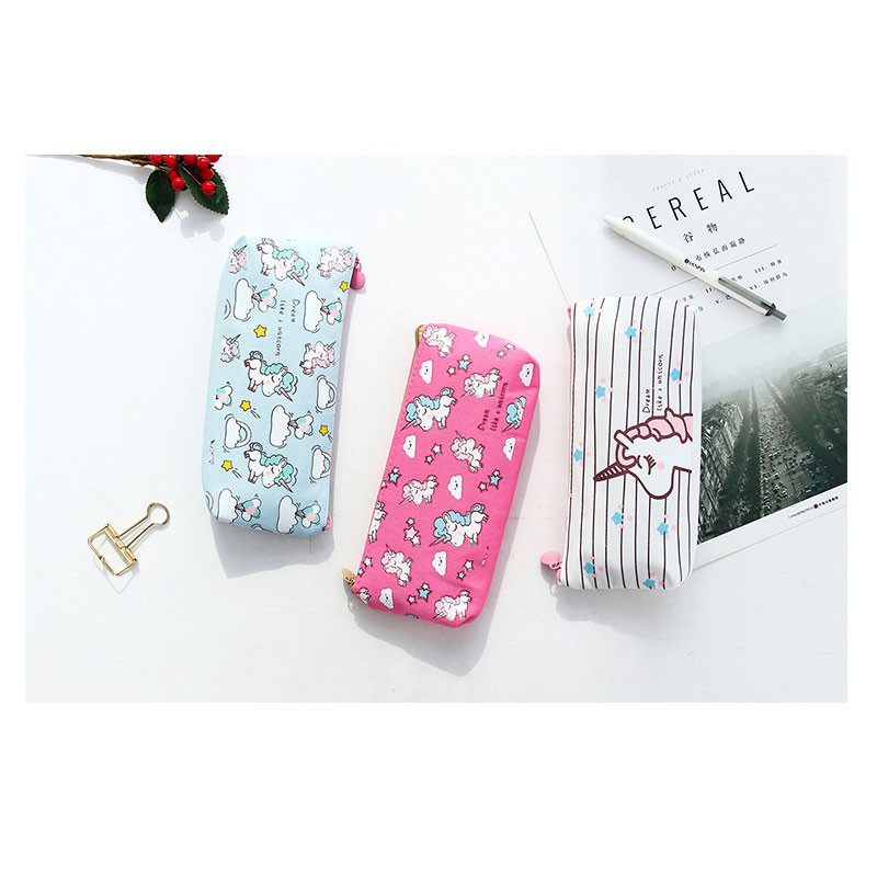 Túi đựng bút bằng vải canvas in hình kỳ lân xinh xắn dành cho nữ sinh