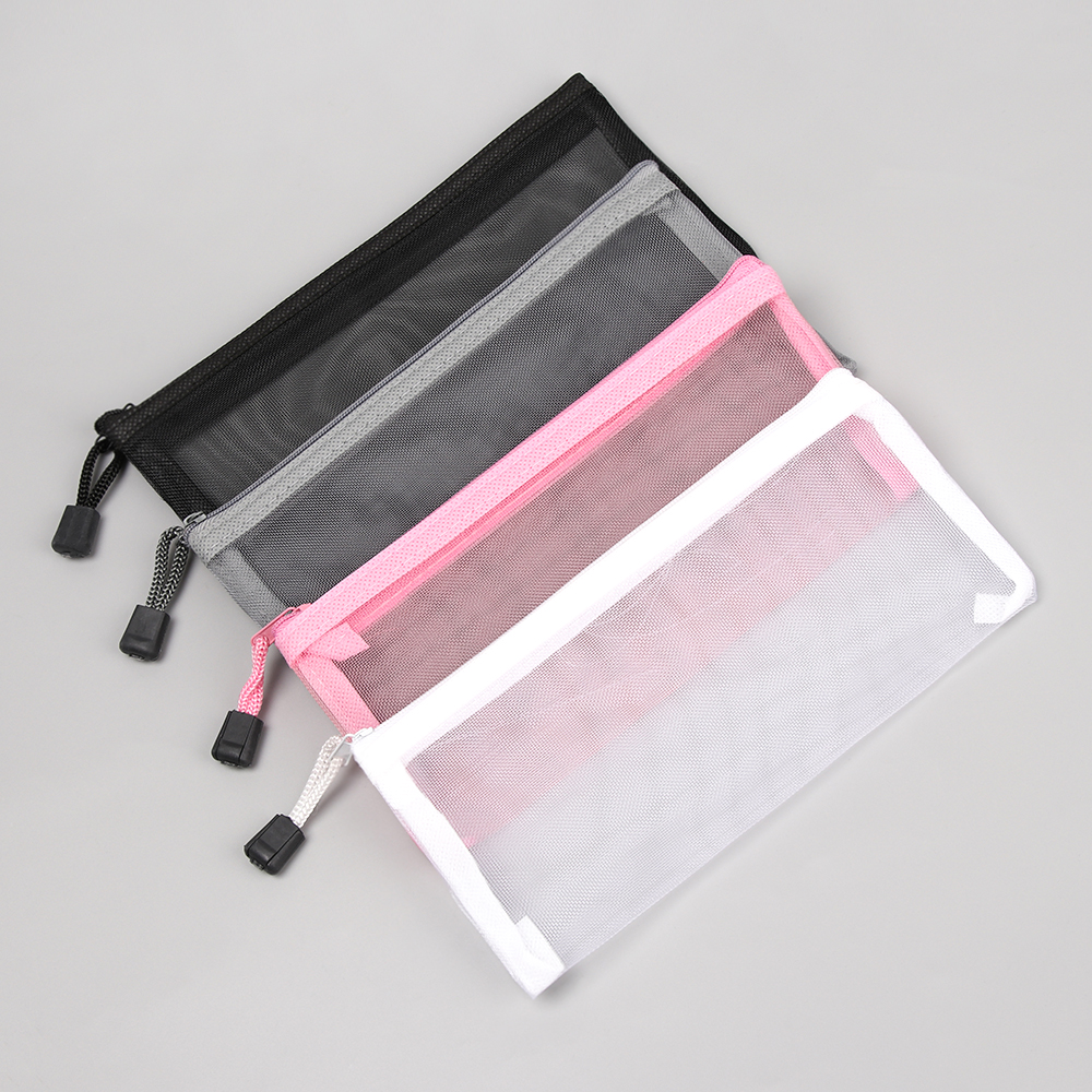 Túi đựng bút dạng lưới có khóa kéo màu trơn tiện dụng