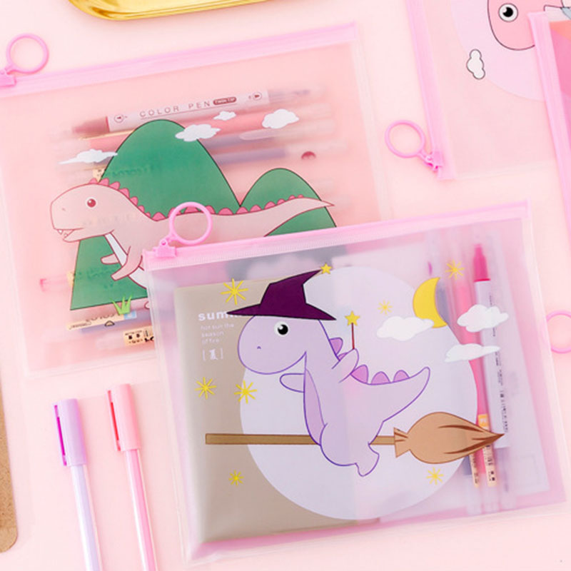 Túi Đựng Bút Trong Suốt In Hình Khủng Long Dễ Thương Tiện Dụng
