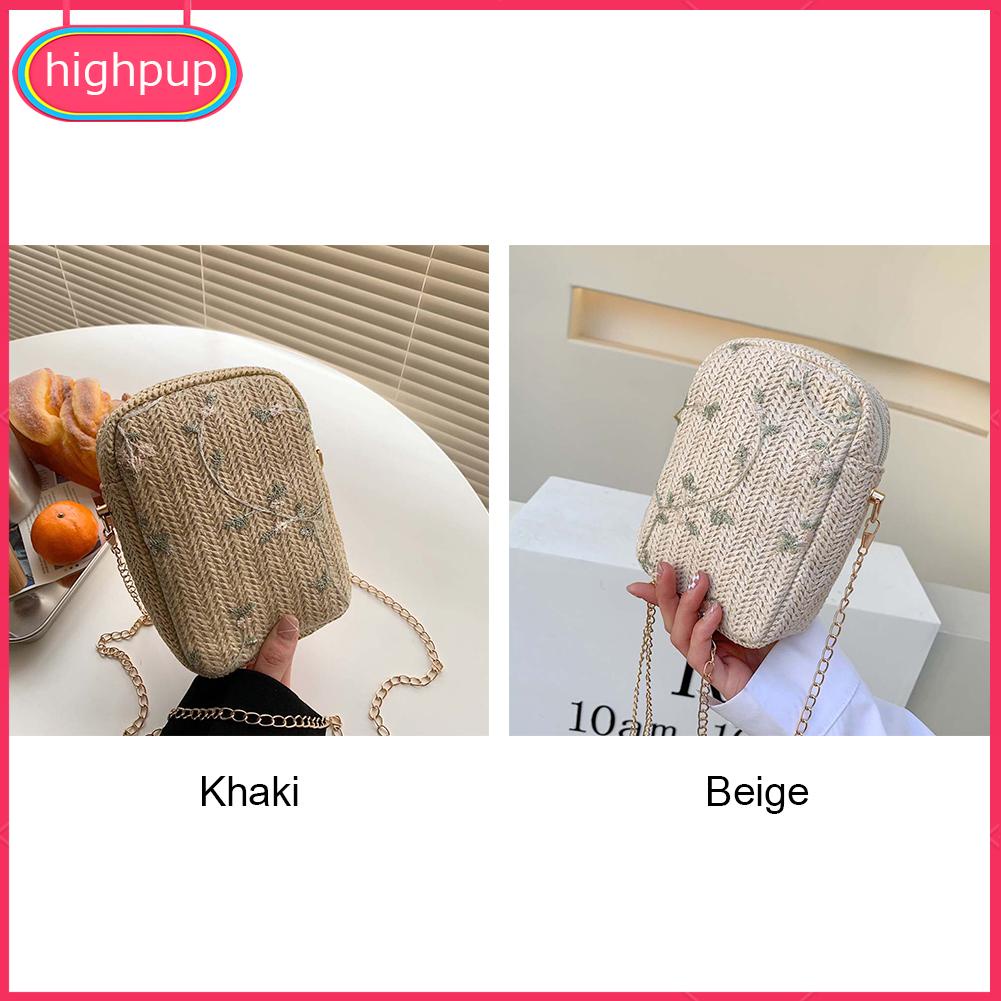 Túi Đeo Chéo Đan Cói Phối Lưới Hình Hoa Nhỏ Đựng Điện Thoại Thời Trang Cho Nữ