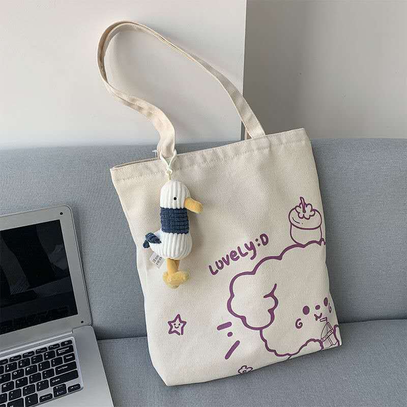 Túi Đeo Chéo Canvas Cỡ Lớn Họa Tiết Hoạt Hình Dễ Thương Cho Nữ