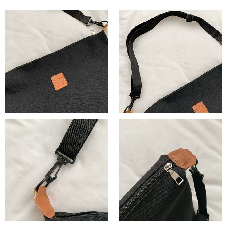 Túi đeo chéo, đeo vai canvas trơn cỡ vừa phong cách Hàn Quốc đeo đi học đi chơi, dễ phối đồ