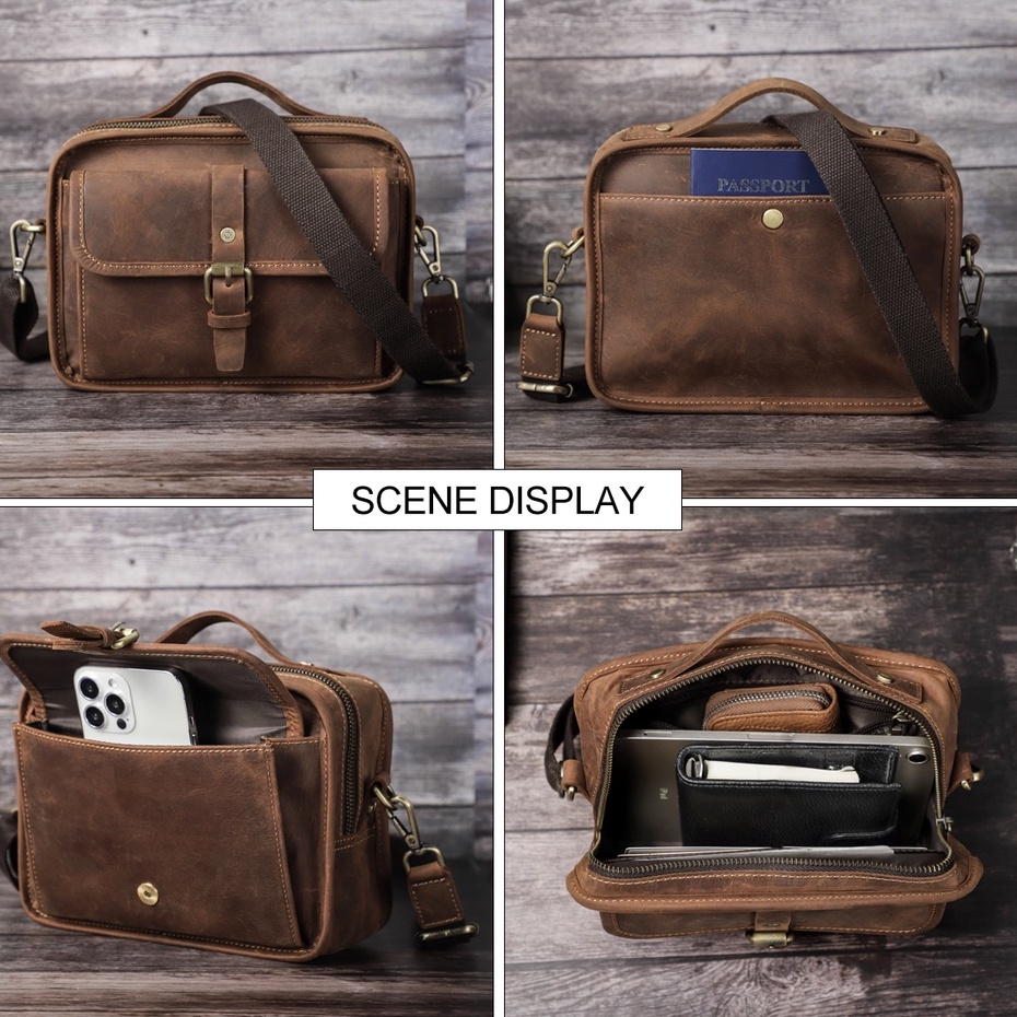 CONTACT'S Túi Đeo Chéo Vai Bằng Da Thật Chất Lượng Cao Phong Cách retro Cho Nam