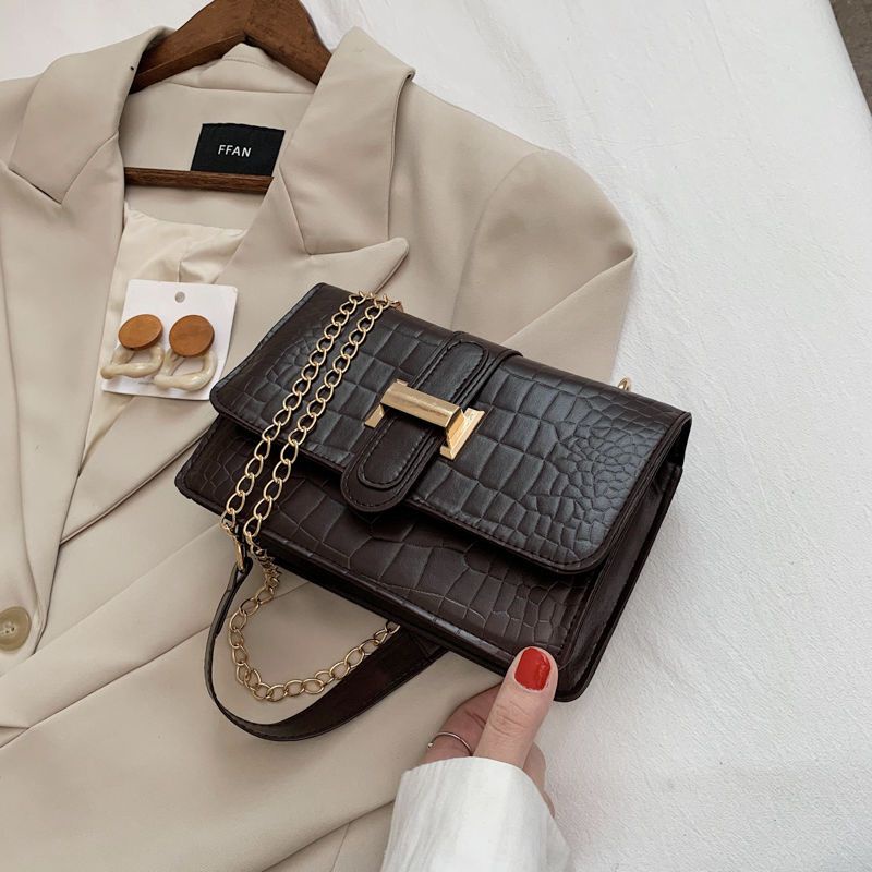 Túi Đeo Chéo Dáng Vuông Nhỏ Màu Trơn Phối Dây Xích Thiết Kế Thời Trang Hàn Quốc Mới Mẻ