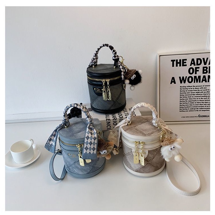Túi Xách Boston Đeo Vai / Đeo Chéo Hình Trụ Cỡ Nhỏ Chất Nhung Có Khóa Gài Thời Trang Cho Nữ